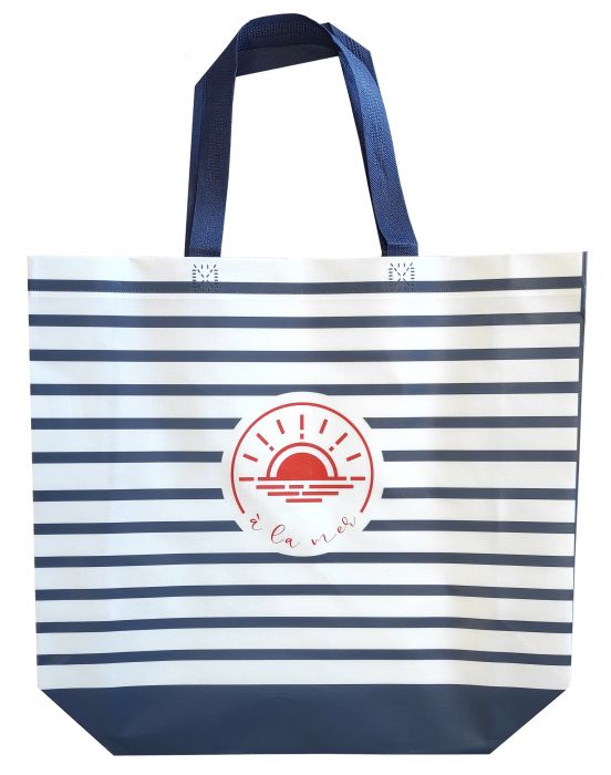 ✔️ Design: gestreifter Marine-Druck mit „à la mer“-Logo