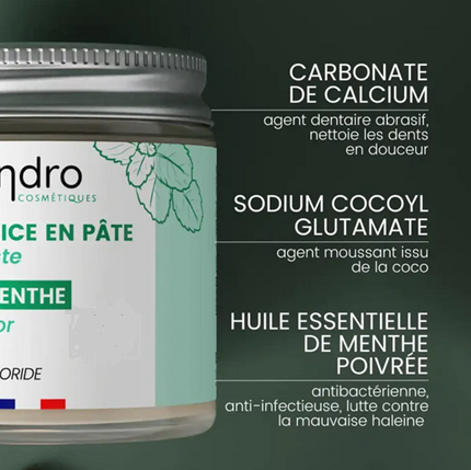 Die Zahnpasta „Minze“ von ENDRO Cosmétiques überzeugt durch ihre Reduktion auf das Wesentliche: nur 6 sorgfältig ausgewählte, 100 % natürliche Zutaten. Handgefertigt in Lannion, Bretagne, verzichtet sie vollständig auf bedenkliche Inhaltsstoffe wie Titandioxid, Mikroplastik oder Fluor. Für alle, die Wert auf natürliche und nachhaltige Pflege legen, ist sie die ideale Wahl.